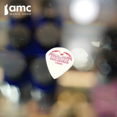 This is our take on the Dunlop Jazz III pick shape. This is the smaller brother of our TB4. This pick packs a lot of tone and grips well. It’s available in 1.4mm / 1.6mm gauge and several colours