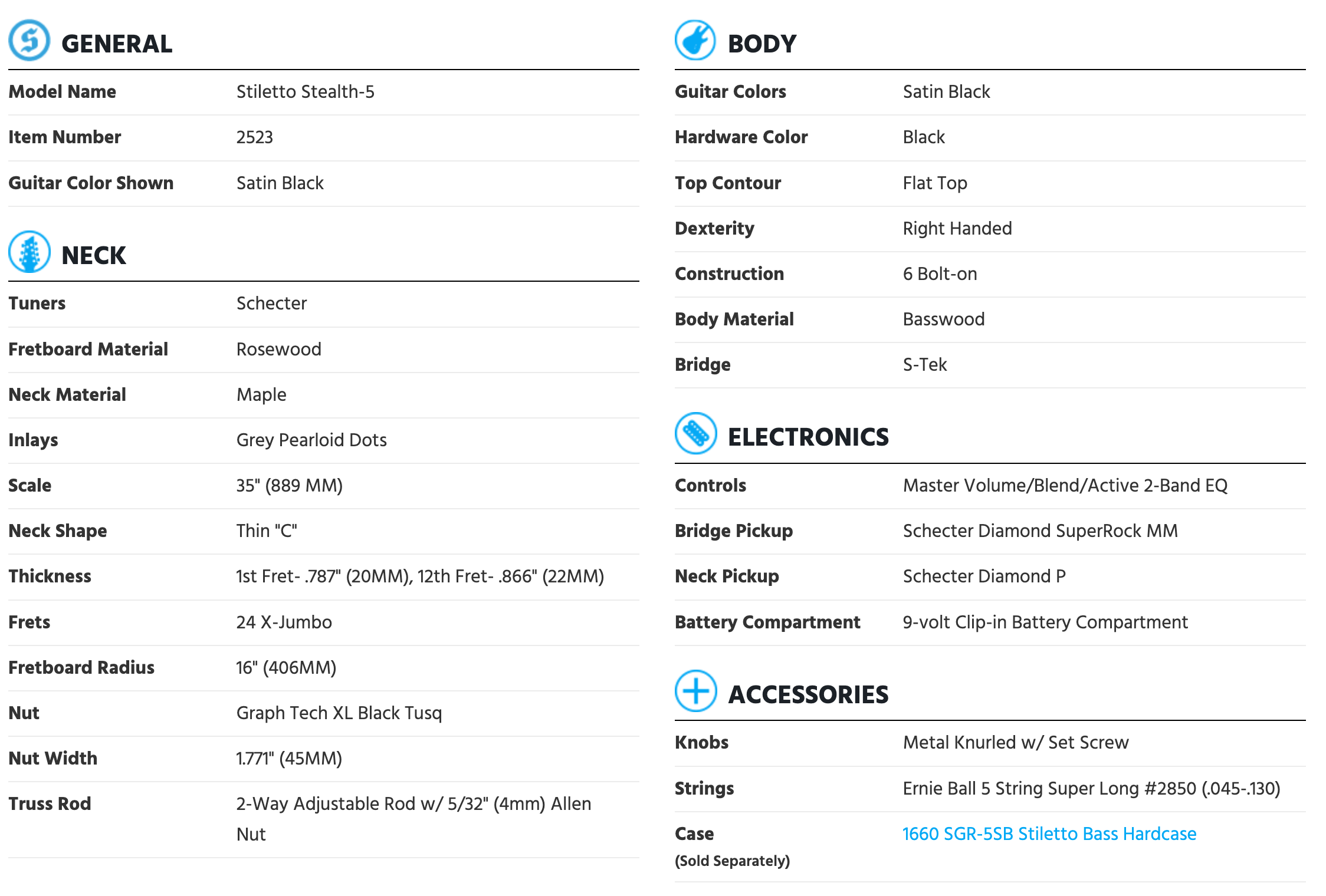 Schecter | STILETTO STEALTH-5 [Satin Black]